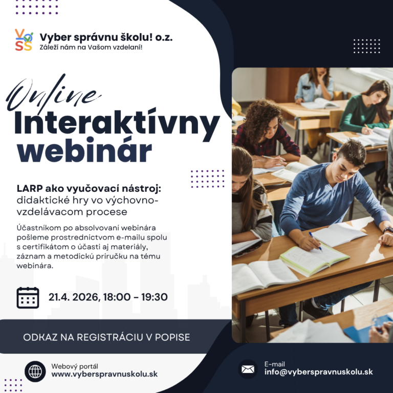 Interaktívny webinár – „LARP ako vyučovací nástroj – didaktické hry vo výchovno-vzdelávacom procese”